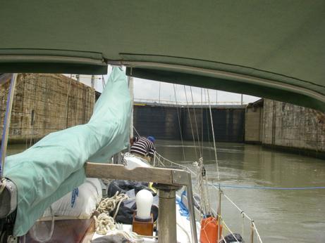 We went through those locks like pro's, the time flying by. We motored off to one side so that we could untie the yachts and continue on our way under our own engine. We were off to meet the boat that would take our advisor, Carlos, back to shore. In reality the trip through the three locks had taken 3 hours..but it sure didn't feel like it!